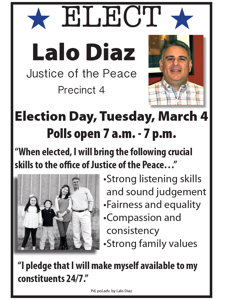 Since January 1, 2015, Lalo has served as Justice of the Peace for Precinct 4, earning a reputation for fairness, accessibility, and professionalism. In that role, he has worked closely with families, law enforcement, and county officials, often during some of the most challenging moments our community has faced.